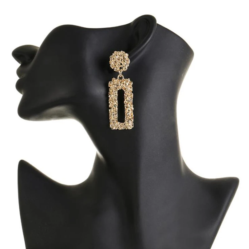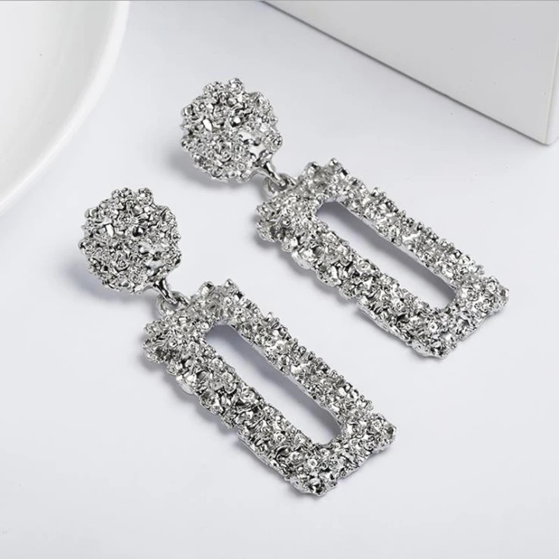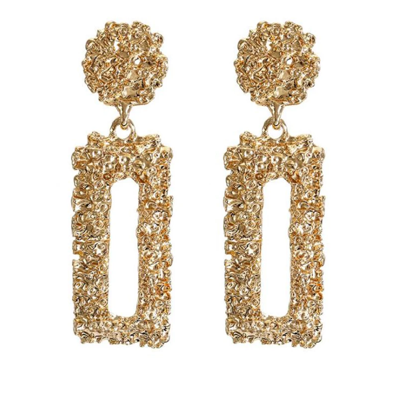Это описание продукта. Название продукта:Винтажные Модные прямоугольные серьги, Преувеличенные металлические серьги для женщин, простые геометрические серьги с тиснением, ювелирные изделия Материал: алюминиевый сплав Zirc Размер:Как на фотографиях Длина:Как на фото Цвет:Серебро/золото Посылка:Пенополиуретан с открытыми отверстиями. Материал: металл Процесс обработки:Покрытие