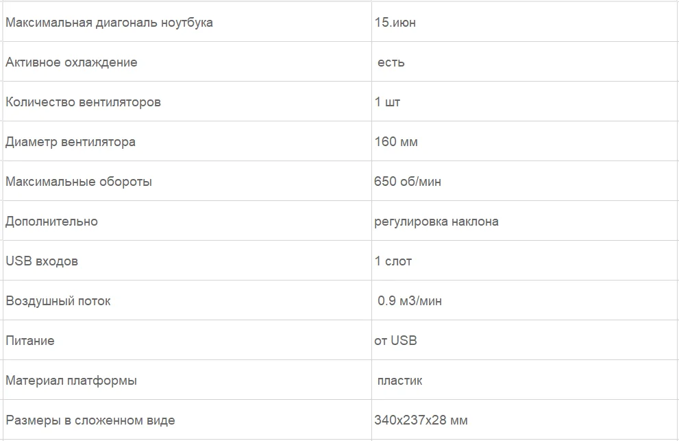 Подставка рассчитана на ноутбуки с диагональю, не более 15,6 дюйма. Встроенный вентилятор вращается со скоростью 650 об/мин и способствует достижению качественного результата. Уровень шума при работе составляет всего 20 дБ..