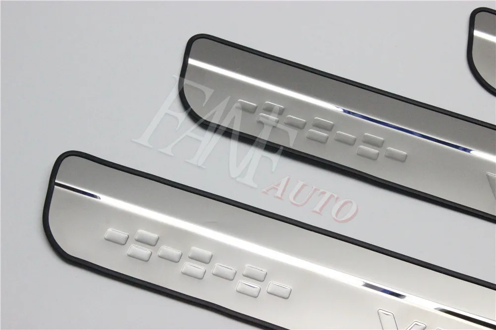 C. Защита от порога принимает материал из нержавеющей стали, который является грязеотталкивающим и износостойким, чтобы защитить дверную раму вашего автомобиля.