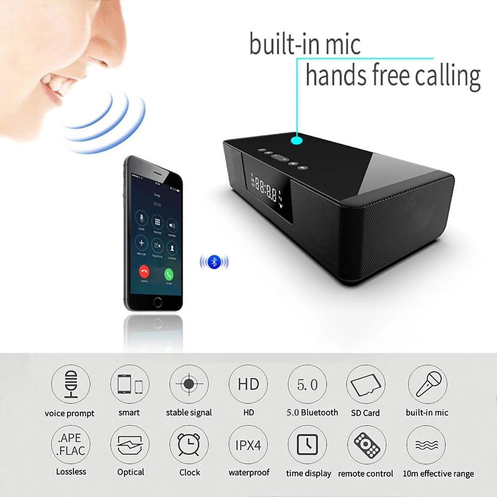 1: версия Bluetooth V5.0, BR, EDR, BLE; 2: расстояние передачи 8-10 метров; 3: максимальный объем воспроизведение музыки, время доставки составляет около 5,5 часов, и средний объем составляет 10 часов. 4: Время зарядки 1 а составляет около 5 часов; 5. Использование одной только QI зарядки может заряжать мобильный телефон с питанием 3000 мАч (Беспроводная зарядка составляет 5 Вт); 6: Зарядка QI + время воспроизведения динамика, можно зарядить телефон 750 мА · ч + 1 ч Время воспроизведения; 7: Время в режиме ожидания составляет около 120 часов; 8. Поддержка формата файлов: MP3, WAV, WMA, FLAC, APE; 9: Материал аккумулятора 18650; 10: аккумулятор 4000 мАч; 11: напряжение зарядки 5 в пост. Тока/1 А-2 А; 12: разъем для зарядки micro 5pin (V8); 13: мощность динамика 5 Вт × 2; 14: вход Тип источника/Функция Bluetooth / TF-карты/U диск/3,5 мм AV/RCA/волоконный/Инфракрасный дистанционный пульт/Встроенный микрофон/Будильник/часы/телефонные звонки в режиме hands-free/FM/Беспроводная зарядка;