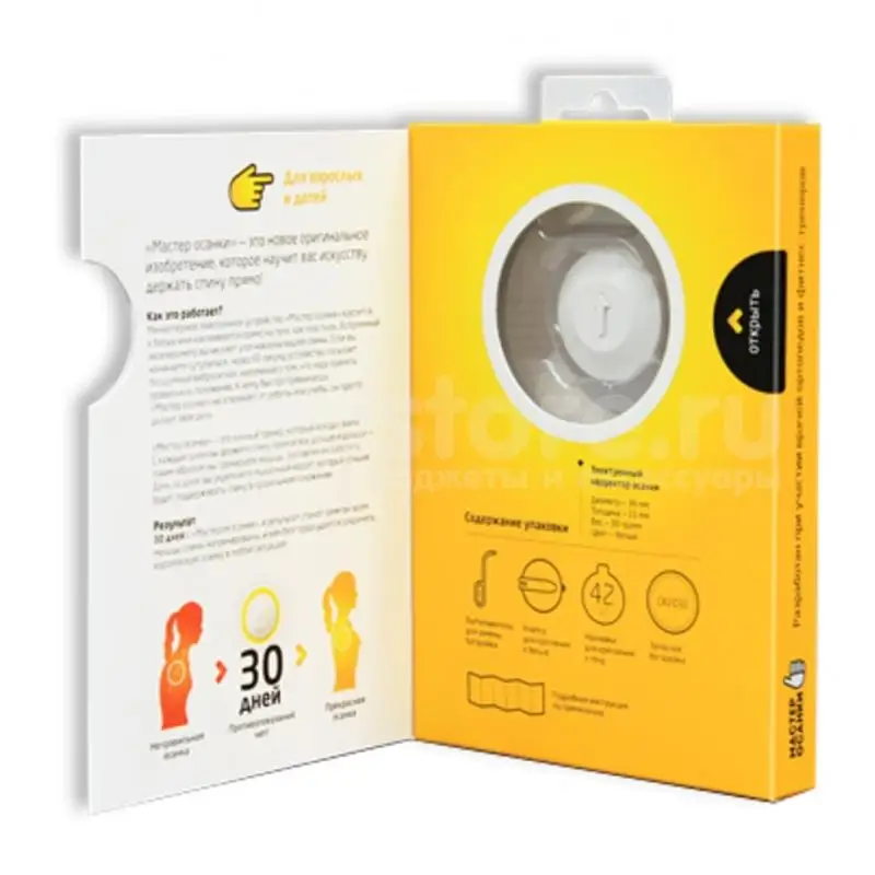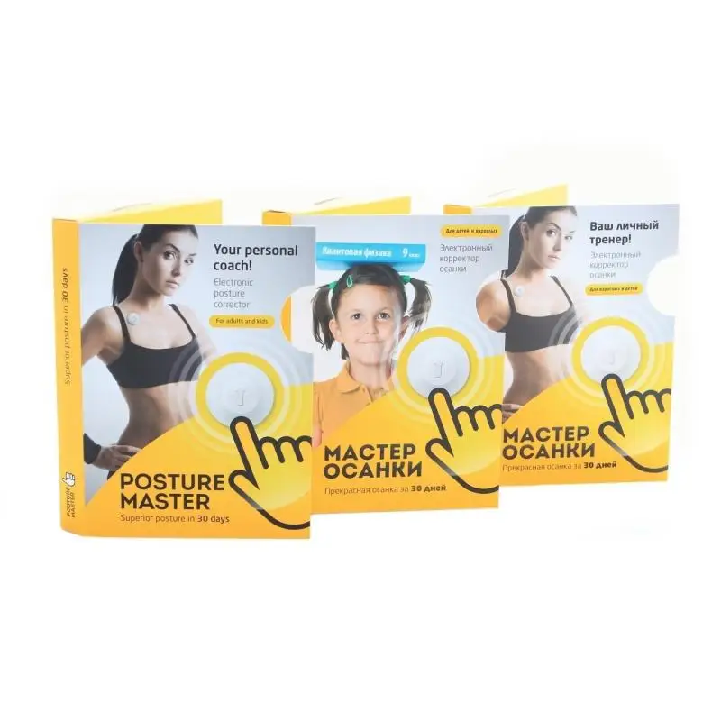 Мастер осанки - небольшое приспособление, следящее за Вашей осанкой весь день.Крепится на тело с помощью липких лент или на одежду с помощью клипсы.Вибрирующий сигнал предупреждает о необходимости вернуть правильную осанку.В комплекте - сменная батарейка.Отличия в вариантах комплектов - в упаковке (детская или взрослая), сам корректор осанки и комплектация идентичны.