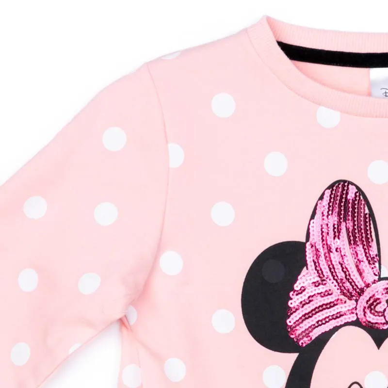 Толстовка из натурального хлопка. Горловина и манжеты изделия на мягких трикотажных резинках. В качестве декора использован лицензированный принт и пайетки. По низу модели расположена широкая оборка. Горловина усилена специальной вставкой, за счет которой изделие не деформируется.