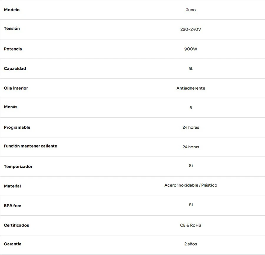 Представляем продукты питания, программы, когда вы хотите есть и. Вы можете наслаждаться! Электрическая скороварка с 9 различными функциями для подготовки богатых и вкусных рецептов без проблем и как можно быстрее, удобно и просто. Откройте для себя Juno и влюбитесь.