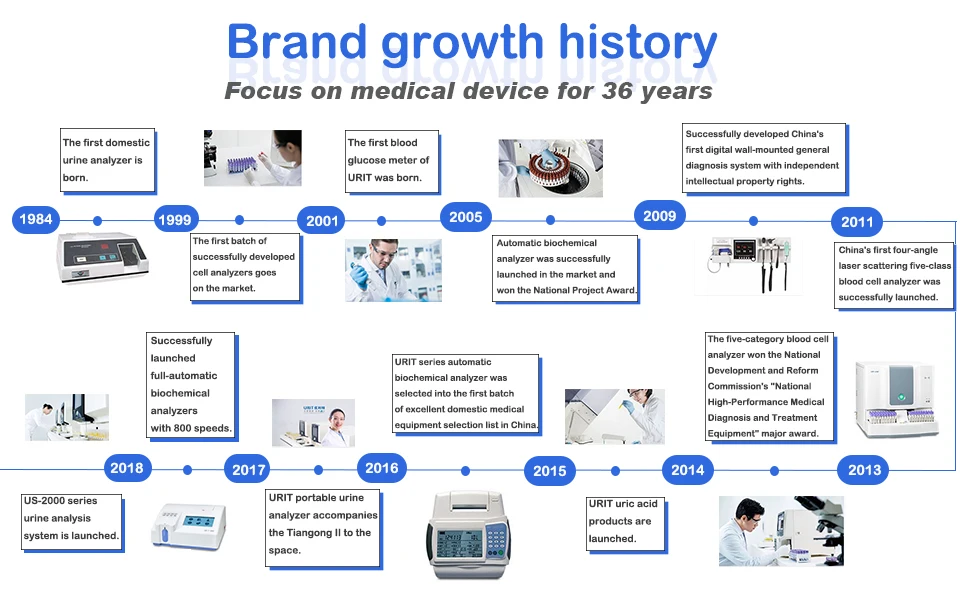 URIT Medical Electronic Co.,Ltd. Является ведущим китайским производителем, поставщиком и поставщиком услуг для медицинской диагностики. Мы работаем в течение 30 лет с 1984 года, сосредоточившись на тестировании на здоровье и разработке восьми продуктов, таких как анализ кровеносных клеток, анализ мочи, биохимический анализ и POCT. Сегодня URIT превратился в крупную медицинскую и медицинскую технологическую группу, объединяющую R & D, производство, продажи и обслуживание. Вся линейка бизнеса продается в более чем 180 странах и регионах по всей стране, и используется в более чем 200000 медицинских институтах по всему миру, оказывает медицинское обслуживание и заботу о людях, И стать одним из предпочтительных брендов клинического диагностического оборудования.