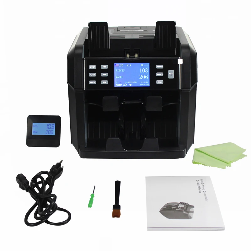 4. Определение деноминации: контактный датчик изображения. 5. Считывание серийного номера банкнот. 6. Подключение к принтеру и ПК. 7.IR,UV,MG,MT,CIS функция обнаружения. 8. Варианты: дисплей клиента/термопринтер. 9. Интерфейс: RS-232, USB,LAN.10. Со встроенным термопринтером.