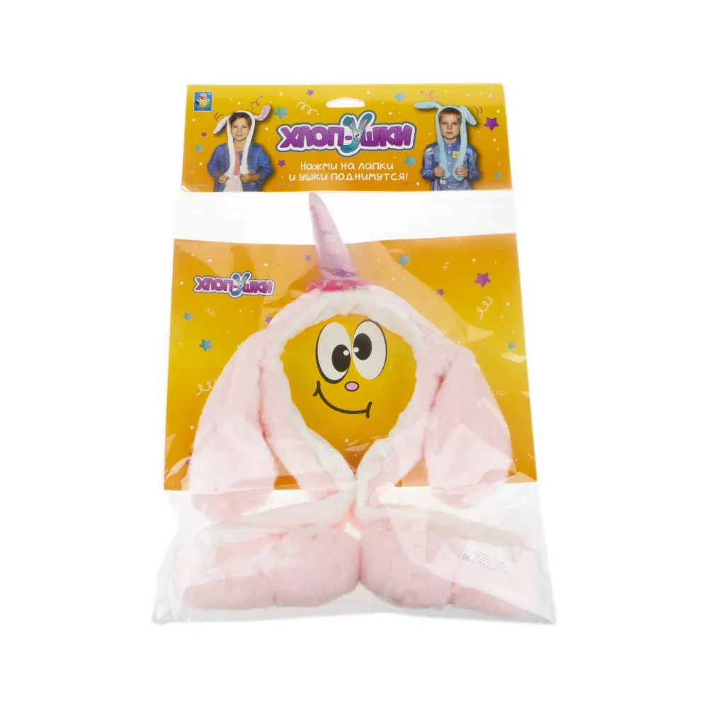 Оободок детский 1TOY Хлоп-Ушки "Единорог розовый", с поднимающимися ушками