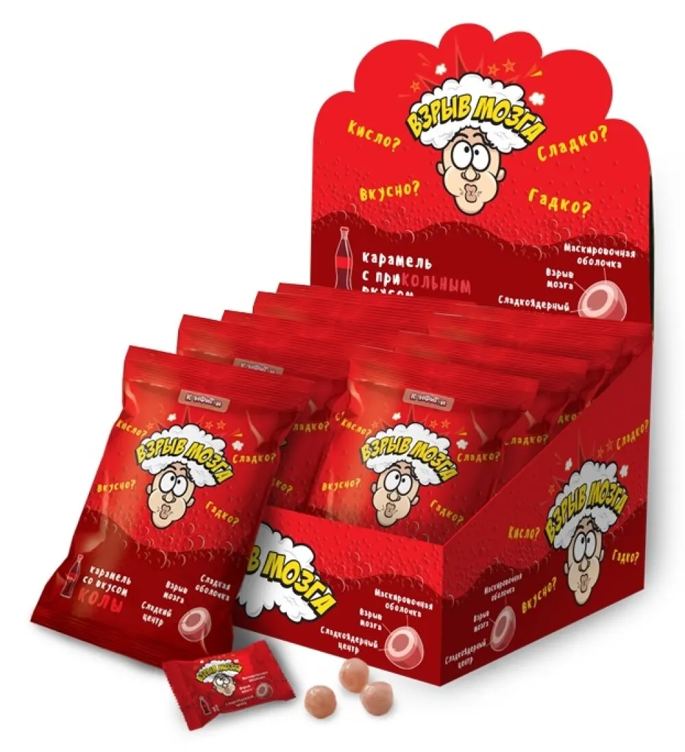Артикул: КТ93240 Наименование: ВЗРЫВ МОЗГА карамель со вкусом колы Фасовка: 15г х 24 х 12 Описание: