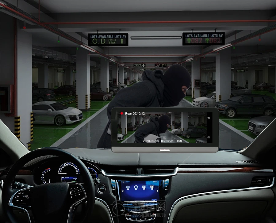 Когда автомобиль находится на заднем ходу, этот Автомобильный видеорегистратор автоматически переключается на изображение камеры заднего вида с помощью линии парковки