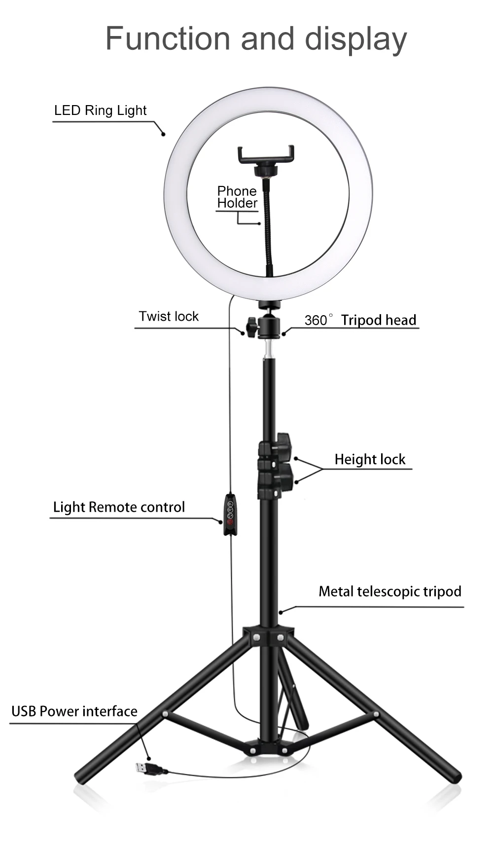 5). Фотостудия кольцевой светодиодный светильник USB заглушка заполняющий светильник.