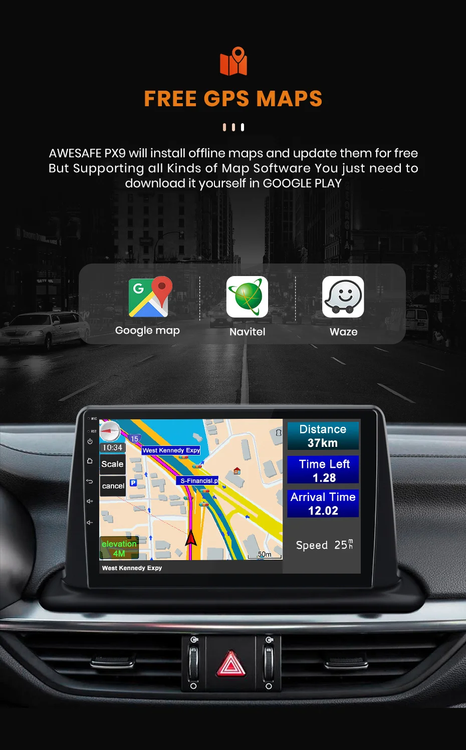 > AWESAFE имеет предварительно установленные офлайн карты и предлагает бесплатное обновление карты постоянно. > Об установке карт: Поддержка Европы/Северной Америки/Южной Америки/Юго-Восточной Азии/карты Ближнего Востока (Мы предварительно установим карты перед отправкой, основываясь на вашем адресе, например: если вы находитесь в России, мы установим карту России) > Об обновлении карты: Если вы хотите обновить карту, пожалуйста, свяжитесь с нами. Мы загрузим карты в Dropbox и предоставим Вам веб-сайт для загрузки. Пожалуйста, не загружайте из других источников, в противном случае это может повредить оригинальную карту. Обновление карты: один раз в год.
