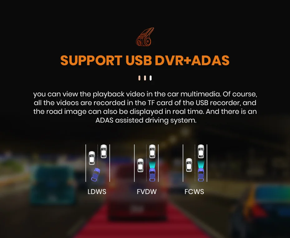 > С столкновения Предупреждение Системы, передняя машина отправления Предупреждение, он обеспечивает вашу безопасность в дороге. > После установки этот видеорегистратор может записывать видео Переднего Вида Автомобиля, включая возможные аварии, обеспечивая безопасность вождения.