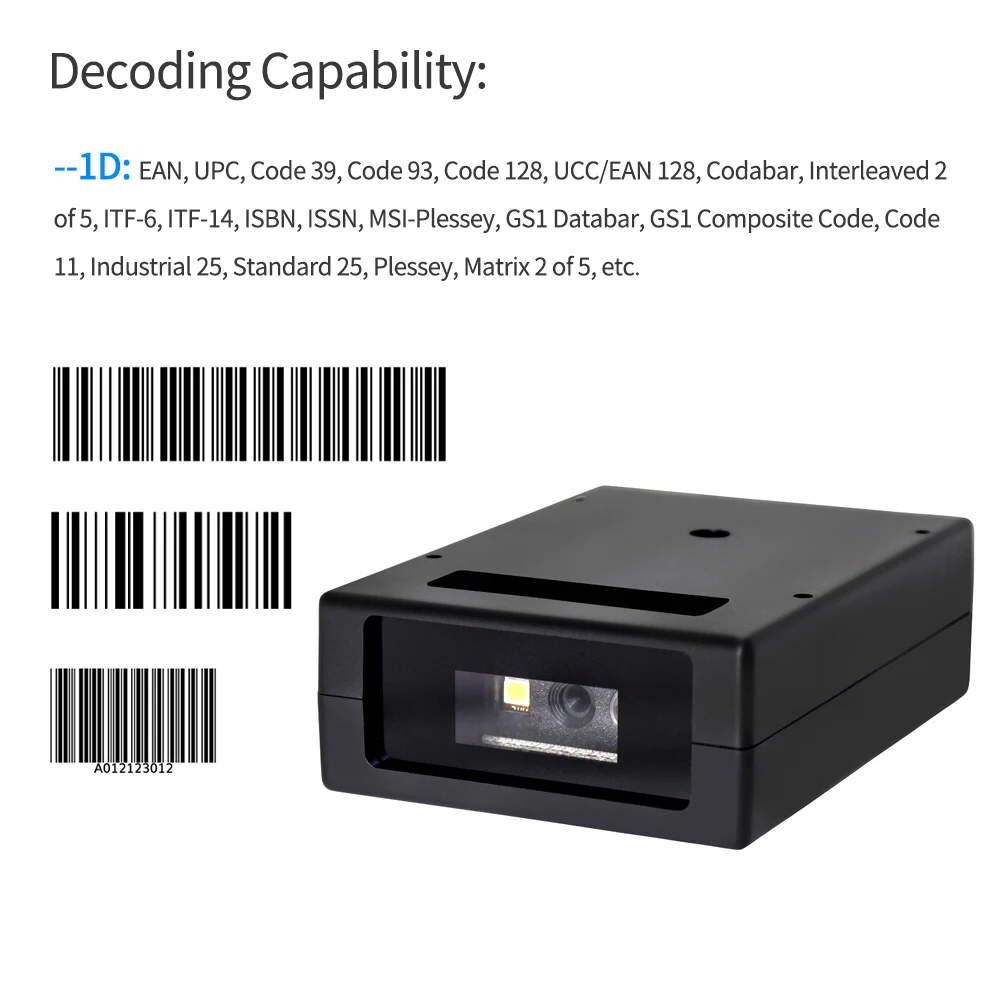 Тип декодирования: 1D: EAN, UPC, код 39, код 93, код 128, UCC/EAN 128, Codabar, Interleaved 2 из 5, ITF-6, ITF-14, ISBN, ISSN, MSI-Plessey, GS1 Databar, GS1 Composite Code, Code 11, Industrial 25, Standard 25, Plessey, Матрица 2 из 5 и т. Д.