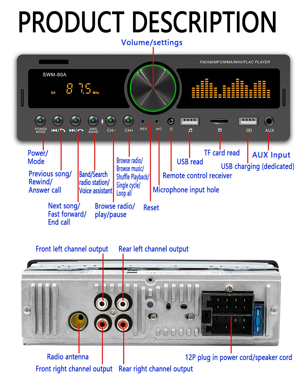 Автомобильный стерео-проигрыватель MP5 4022D 4 1 дюйма Bluetooth USB TF-карта AUX-радио в тире с