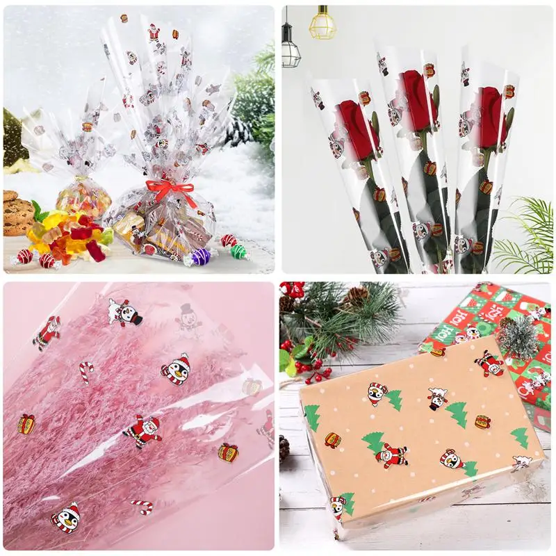 -Наша целлофановая пленка с рисунком Санта-Клауса, модная и праздничная, сложенная пополам, затем свернутая и отправленная в ширину 40 см, и может быть расширена до 80 см шириной, чтобы удовлетворить большие потребности в упаковке.