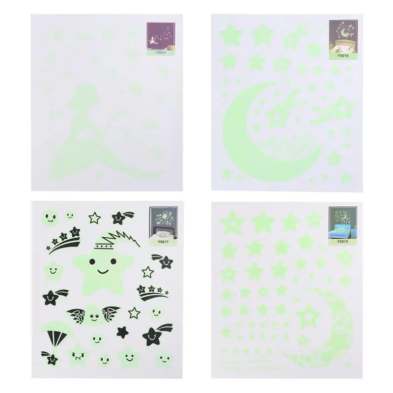 4 листа Светящиеся Настенные наклейки прекрасный ПВХ Настенный декор для спальни бар