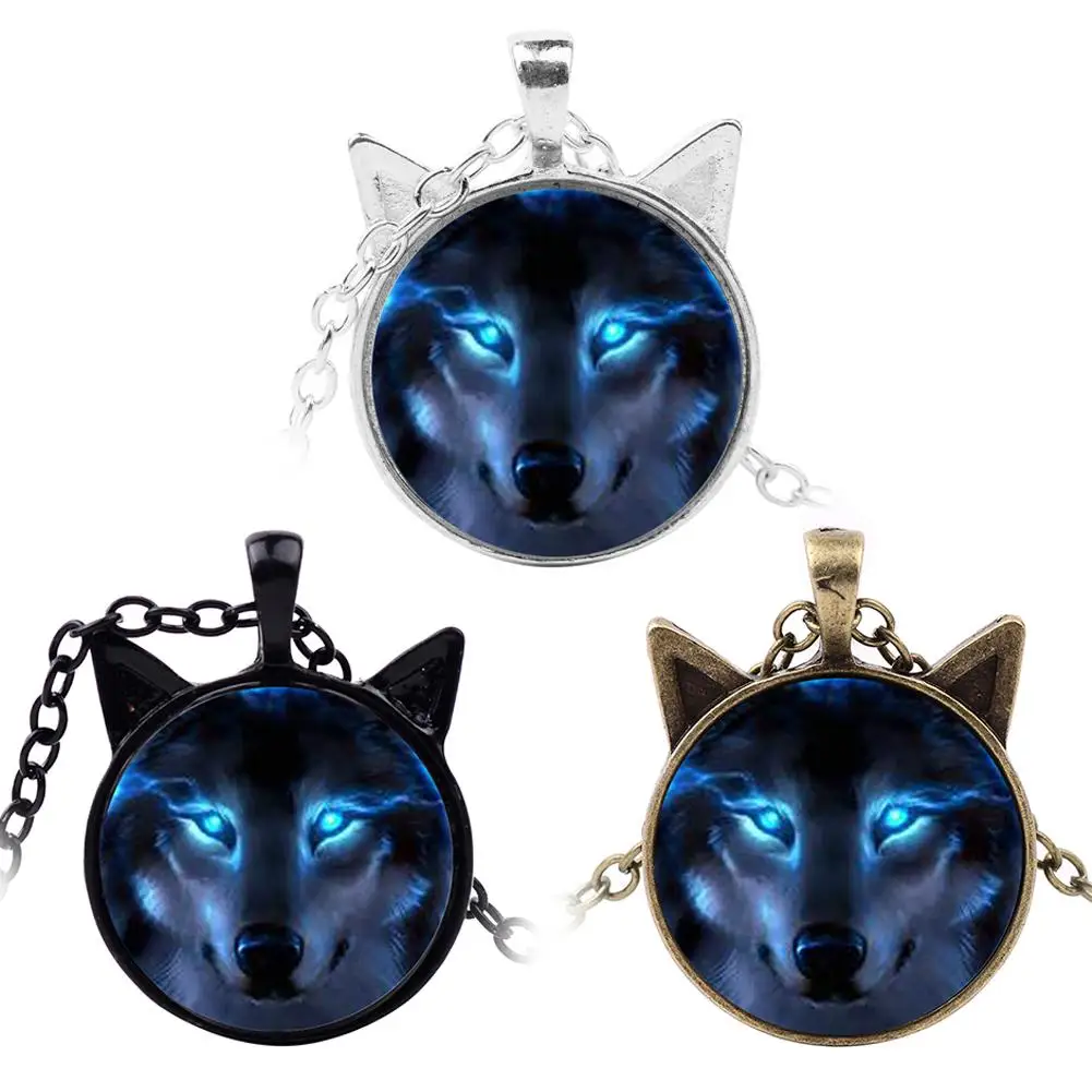 Ретро дизайн с кабошон Волчья Голова, длинная цепочка.