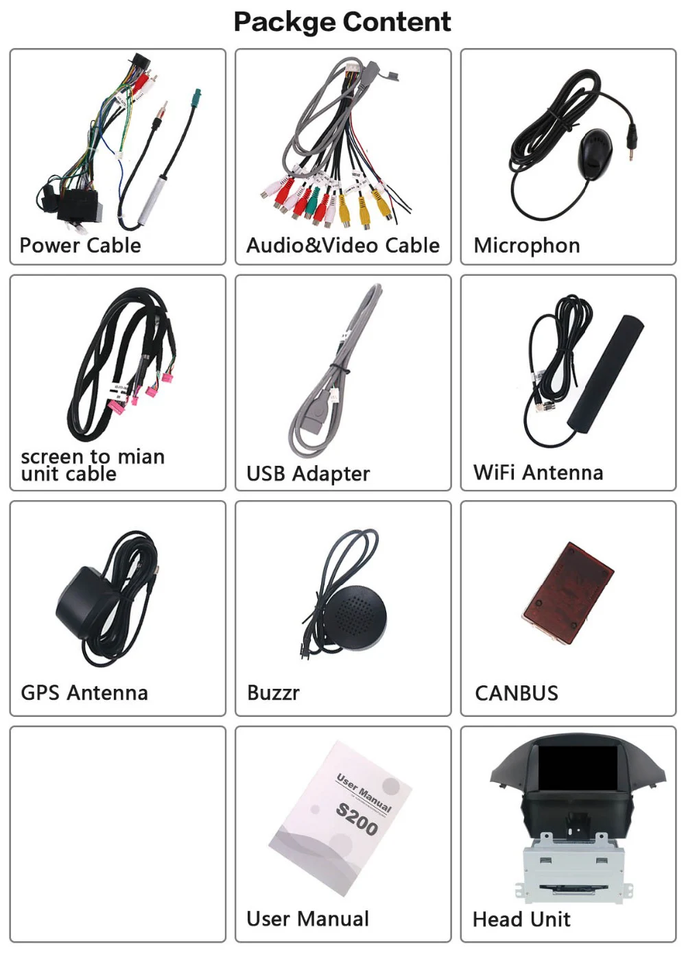 Наш продукт поставляется с GPS антенной, gps-картой для вашей страны, usb-адаптером, аудио и видео входным кабелем, кабелем питания... и т. д., все наборы для установки будут в посылка.