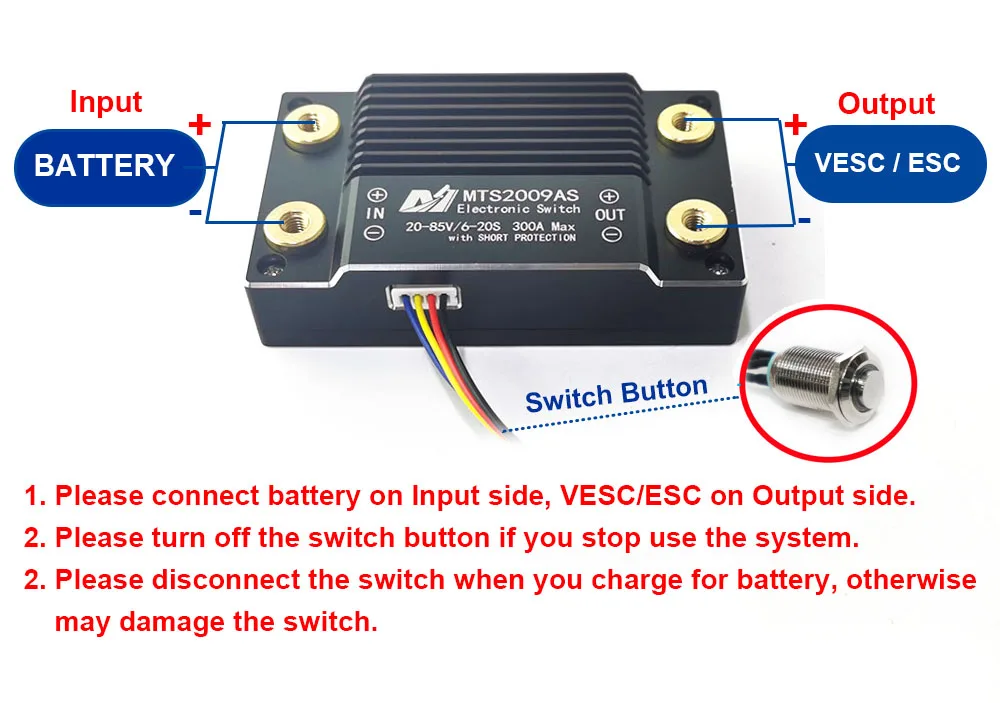 Поскольку совместимые контроллеры VESCTOOL имеют функцию регенеративного тормоза, при использовании с батареей 56 В и выше рекомендуется использовать текущий режим, без тормоза. (Режим рабочего цикла или режим тока с тормозом не рекомендуется для напряжения 56 В и выше).