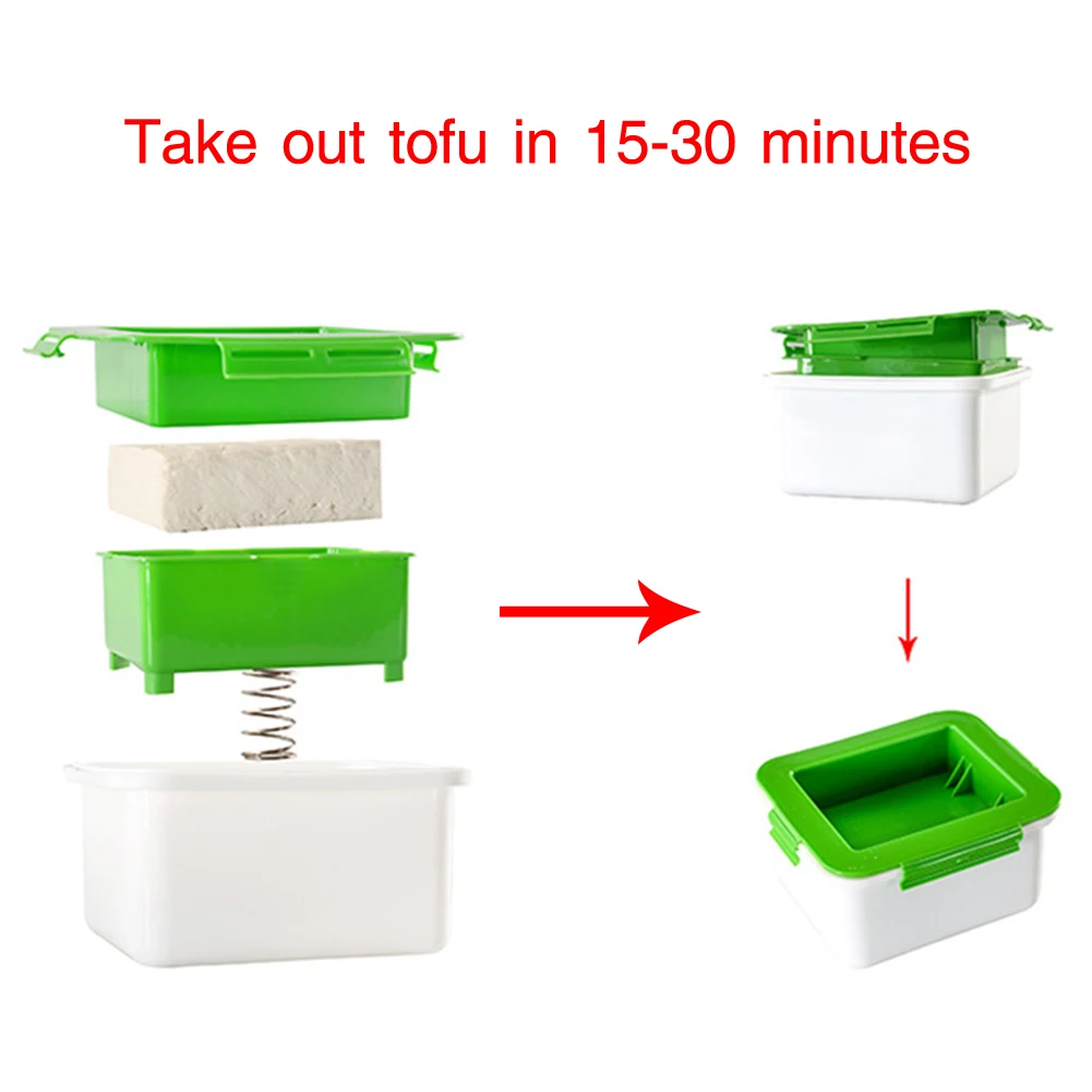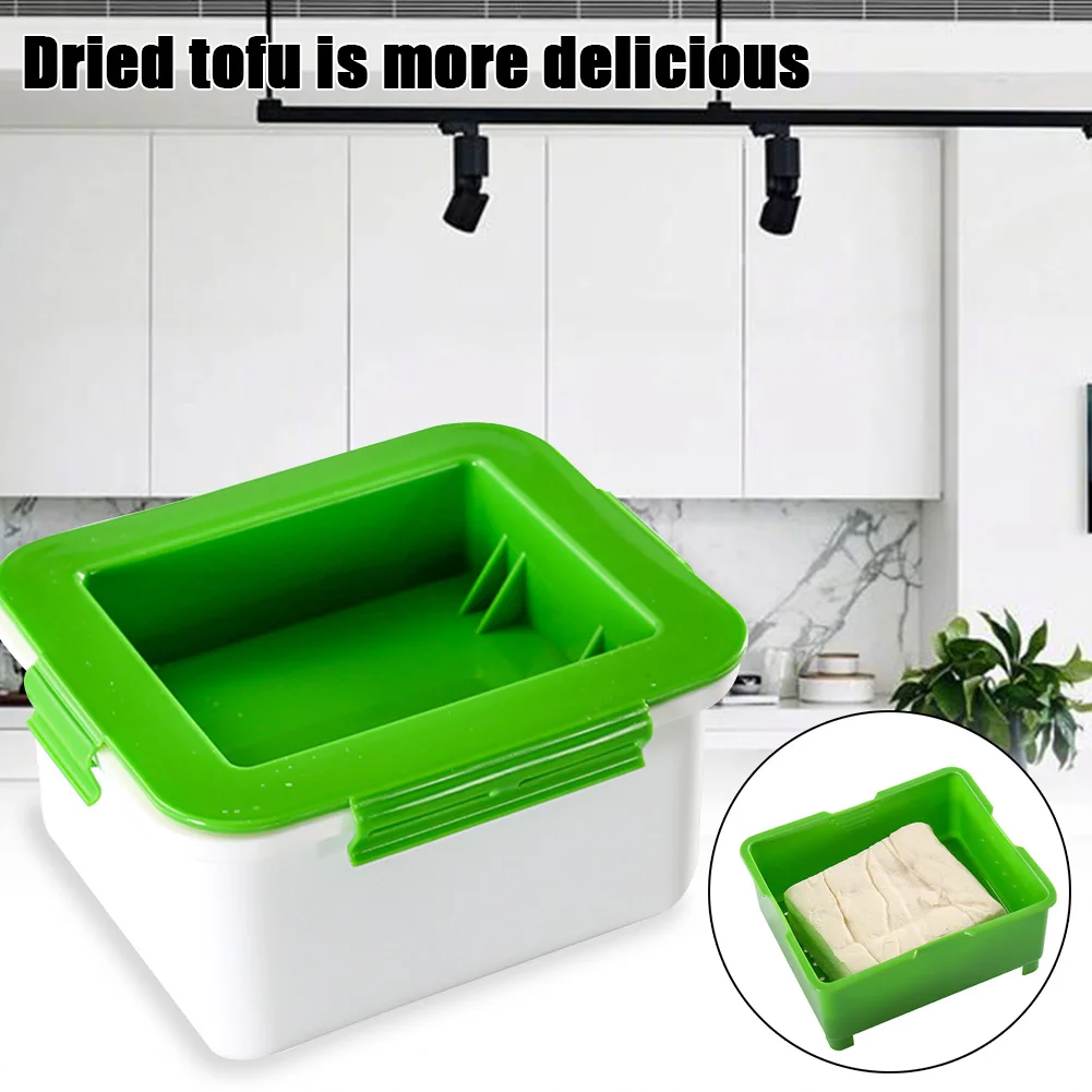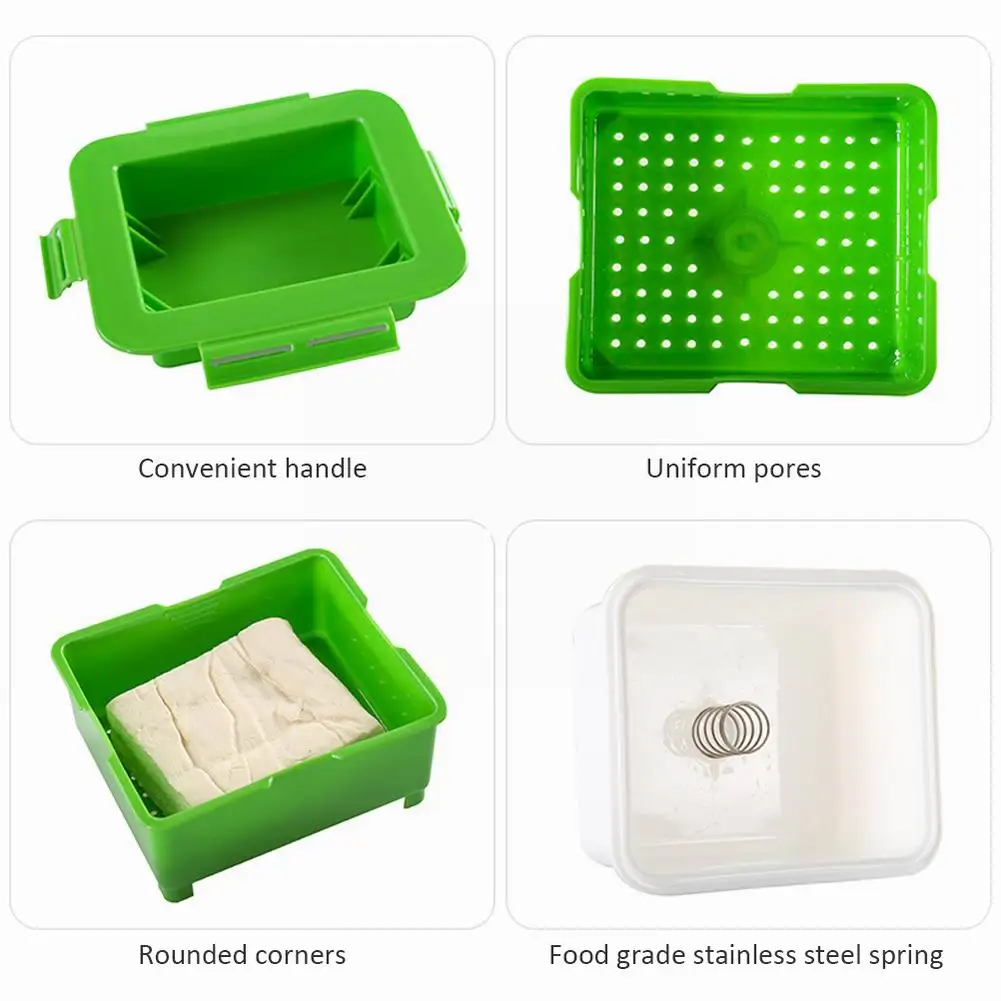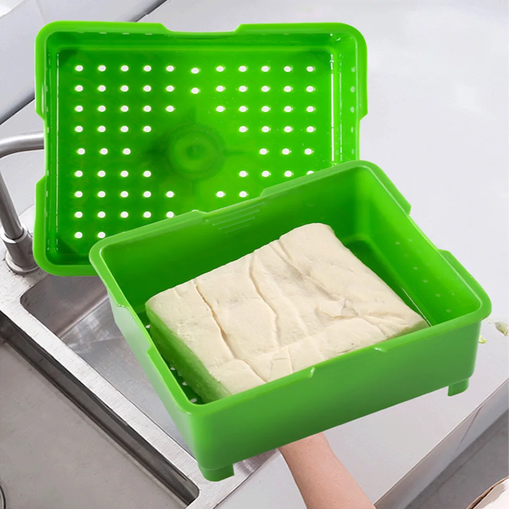 * 2. Пресс tofu состоит из лотка для сбора воды, сливного отверстия и крышки. Положите тофу на сливную воду, а крышка помогает выдавливать воду в тофу.