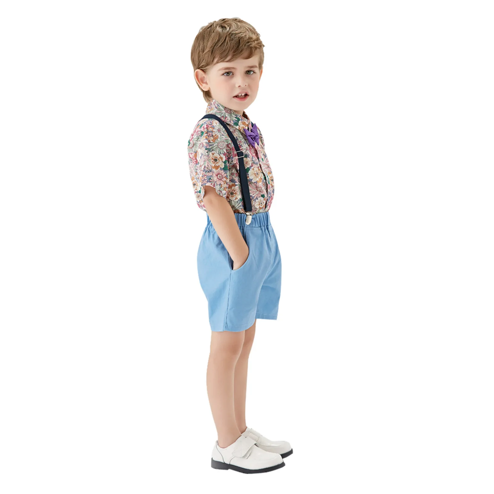 Джентльменская футболка с галстуком-бабочкой для маленьких мальчиков топы + шорты на подтяжках