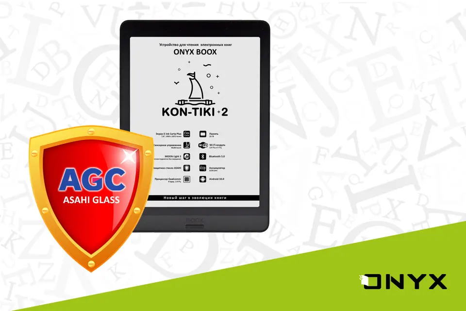 Защитное стекло от известного японского производителя ASAHI расположено поверх E Ink экрана и защищает его от царапин и других повреждений. Новое стекло позволило отказаться от дополнительных бортиков, поэтому экран расположен вровень с корпусом устройства. Это делает работу с электронной книгой более комфортной, а её внешний вид более современным. Кроме того, специальное покрытие снижает вероятность появления бликов на экране.
