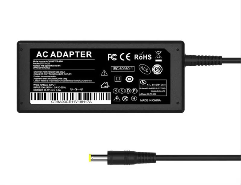 Особенности100% новый товар высокого качества.Изготовлен из качественных компонентов и монтажной платыБезопасный и прочный.Высокое Точное выходное напряжение, небольшие волны и низкие помехи.Встроенный микросхема ИС обеспечивает защиту от перезаряда, короткого замыкания, защиты от перегрузки, защиты от перегрева.Спецификация товараВход: 100-240 В/50-60 ГцВыход: 18,5 V - 3.5AМощность Адаптера: 65 ВтШтекерный наконечник Размеры: 4,8 мм * 1,7 мм