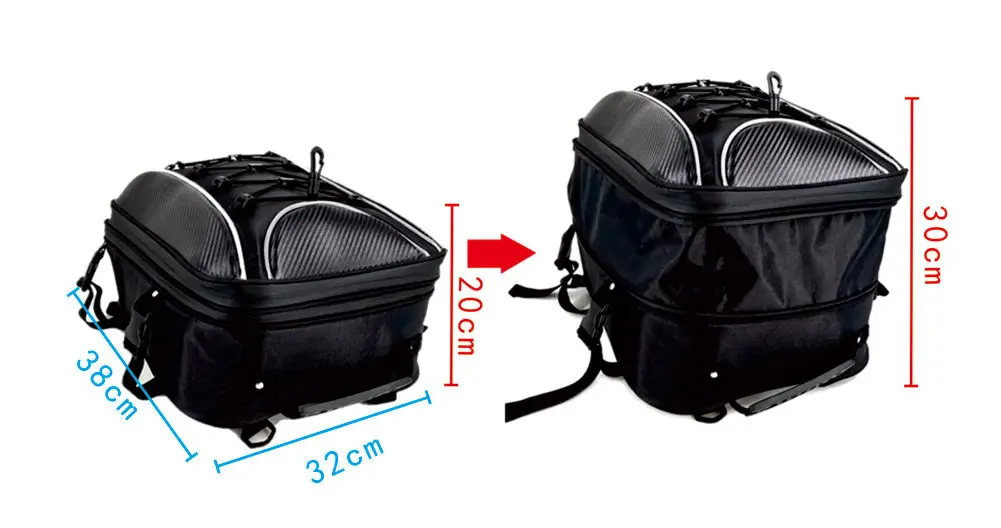 Цвет: красный, серый, зеленый, прозрачный Материал: Ткань Оксфорд + рисунок из углеродного волокна + Эва Размер (прибл.): До: 32*20*38 см После: 32*30*38 см Вес: около 1,2 кг Применимо: хвост, рюкзак, тоут, Кроссбоди Комплектация: установочный ремень заднего сиденья, ремень, плечевой ремень Комплектация: Мотоциклетная Сумка-1 шт.