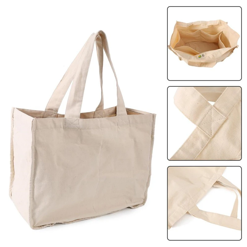 2. Прочные и идеальные холщовые сумки для покупок: посылка из органического хлопка mart включает в себя три многоразовые сумки, чтобы вы могли соответствовать всему, что вам нужно. Если вы предпочитаете, вы также можете купить одну из этих многоразовых сумок. Некоторые из наиболее важных особенностей конструкции сумки включают в себя: большой размер, который идентичен размеру бумажного пакета (33 см в высоту, 19 в ширину и 40 см в длину). 6 внутренних рукавов для бутылок, очень широкие ручки из ткани, двойной прошитый верхний край