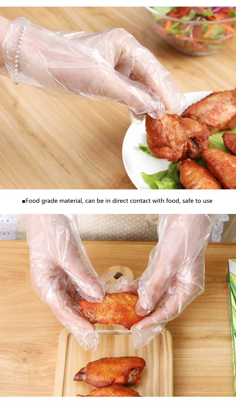 Утолщенные съемные одноразовые перчатки 200 шт прозрачные пленочные перчатки кухонные гигиенические пищевые перчатки