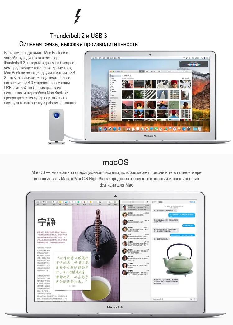 Двойной дисплей и видеозапись: одновременно поддерживает полное разрешение на встроенном дисплее и до 2560 на 1600 пикселей на внешнем дисплее, как на миллионах цветов