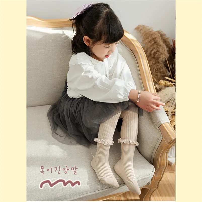 Элегантные колготки принцессы для девочек; Сезон весна-осень; Хлопковые детские колготки в рубчик с кружевными манжетами; Одежда для девочек; Чулки для малышей; Детские штаны; Леггинсы