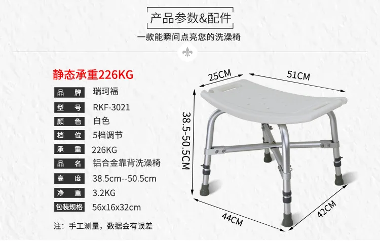 5 регулируемая высота. Высота стула для ванны может быть скорректирована в 7 шагов, что в основном может удовлетворить потребности людей в росте.