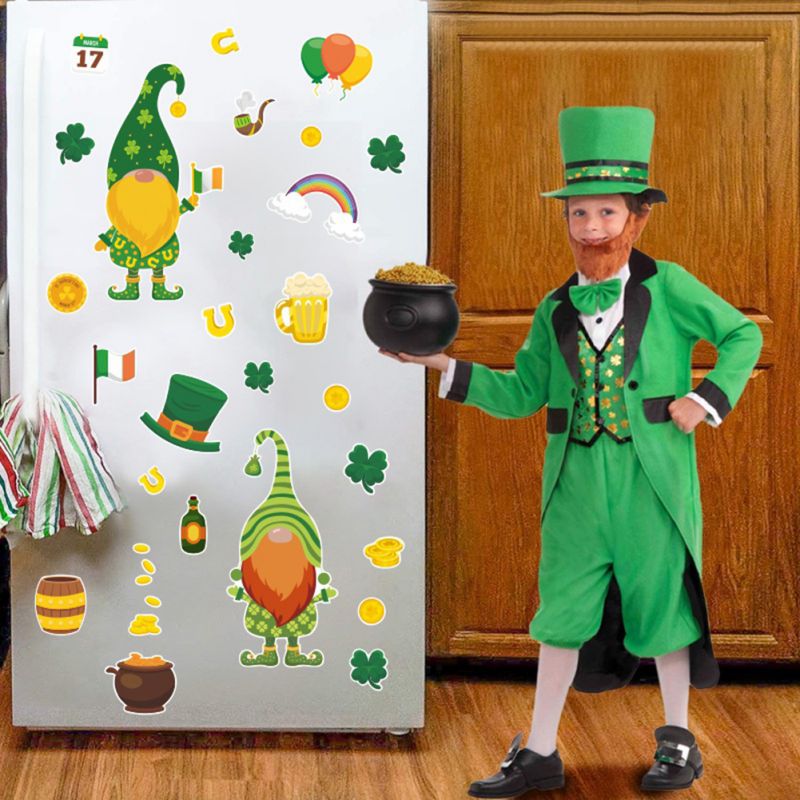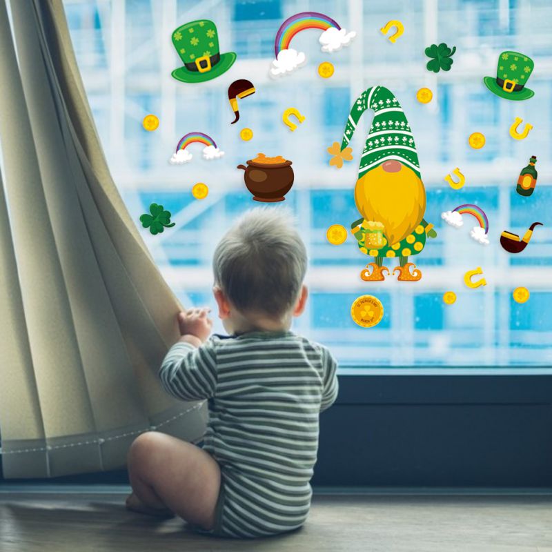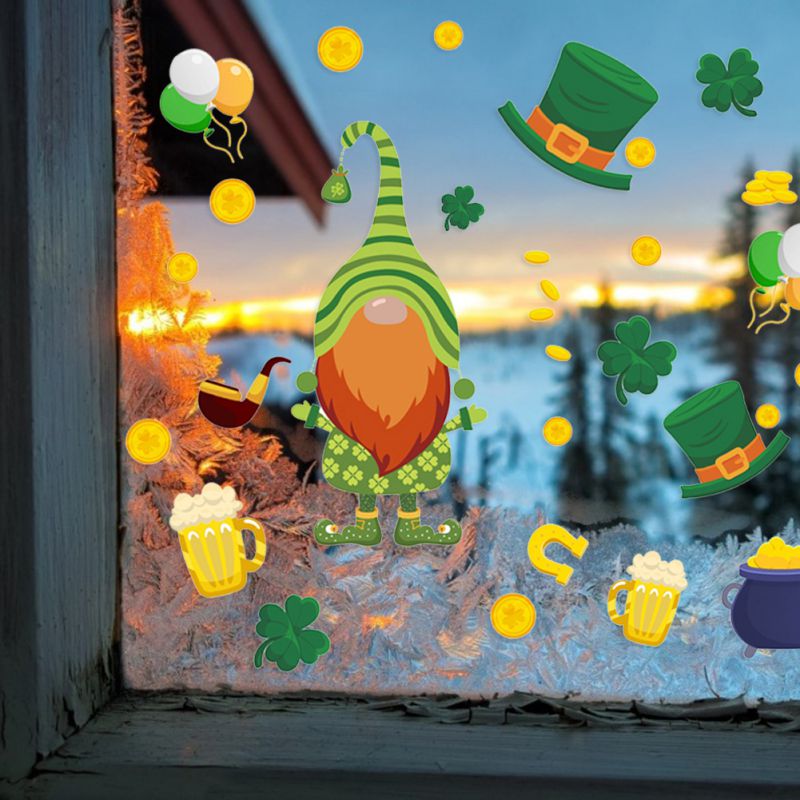 [Материал]: наклейка на окно Св. Патрика сделана из безопасного ПВХ-пластика, это антипригарная, съемная, многоразовая Электростатическая наклейка. Нетоксичный, не выцветает, водонепроницаемый и безопасный для детей.