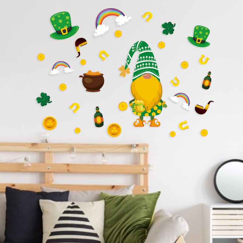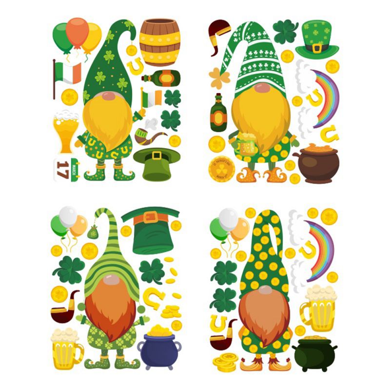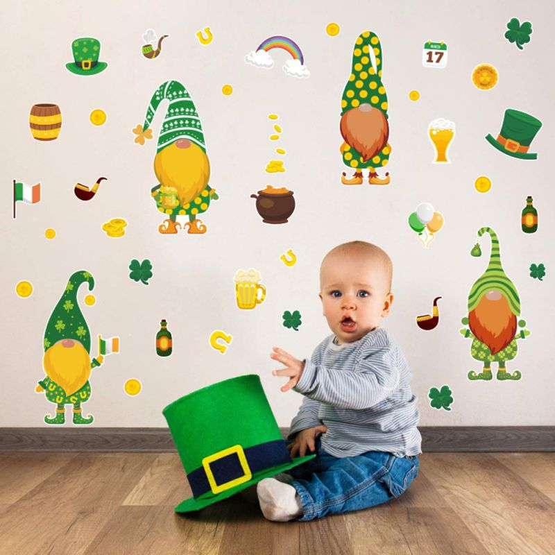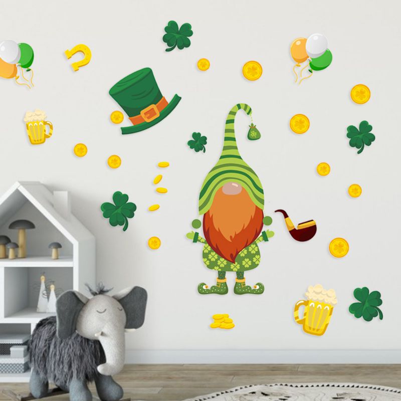 Пасхальные наклейки на окна Gnome Leprechaun Footprin, цепляющие украшения, декор на День святого Патти, дверные наклейки с орнаментом на Пасху