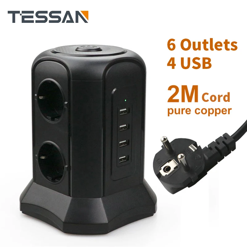 TESSAN несколько розеток С USB поддерживает общий ток 3A. Распределительная коробка с несколькими вилками может распознавать ваши устройства и обеспечивать зарядный ток до 2,4 А, подходит для мобильных телефонов, планшетов и других usb-устройств.