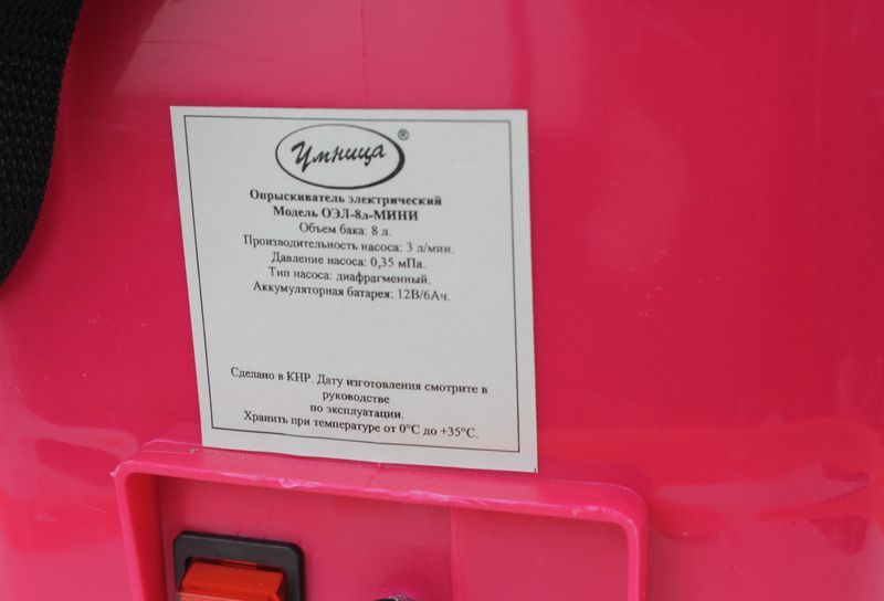 Основные характеристики опрыскивателя аккумуляторного Умница ОЭЛ-8л-МИНИ: