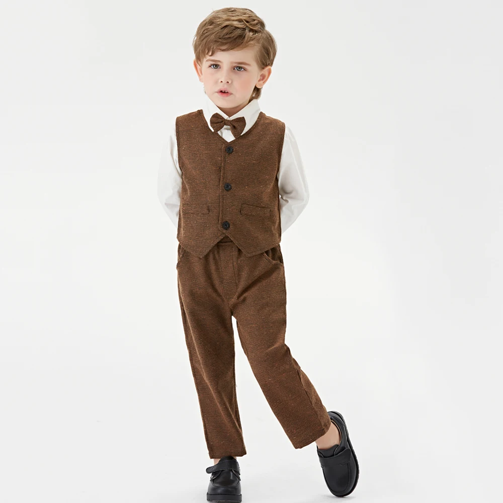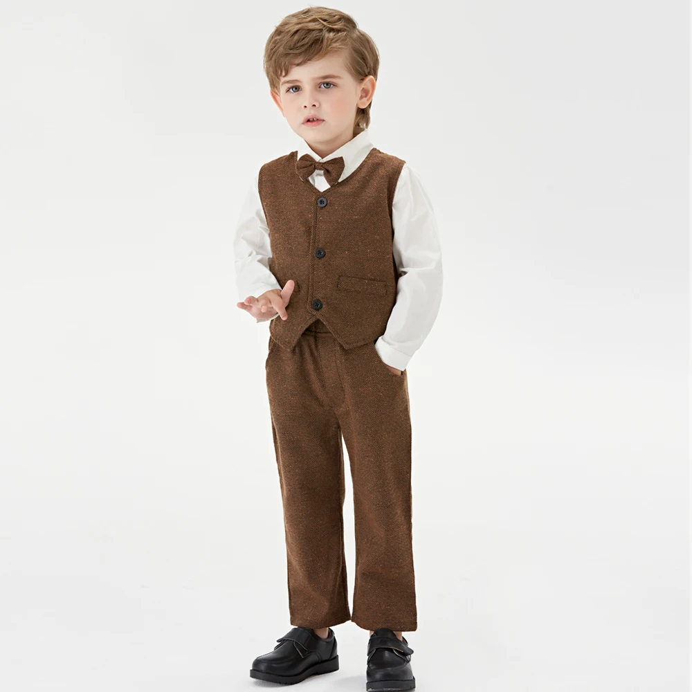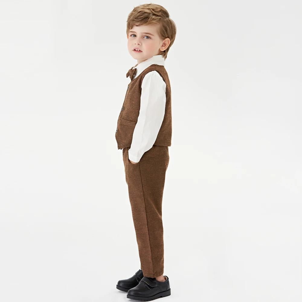 Комплект одежды для мальчиков «Tem Doger», хлопковая рубашка с длинными рукавами и галстуком-бабочкой + жилет + штаны, костюм из 3 предметов, комплект повседневной одежды для мальчиков