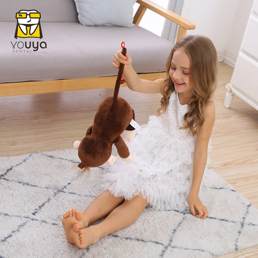 Очаровательная плюшевая личность тигра, родители учат детей чистить зубы так легко.