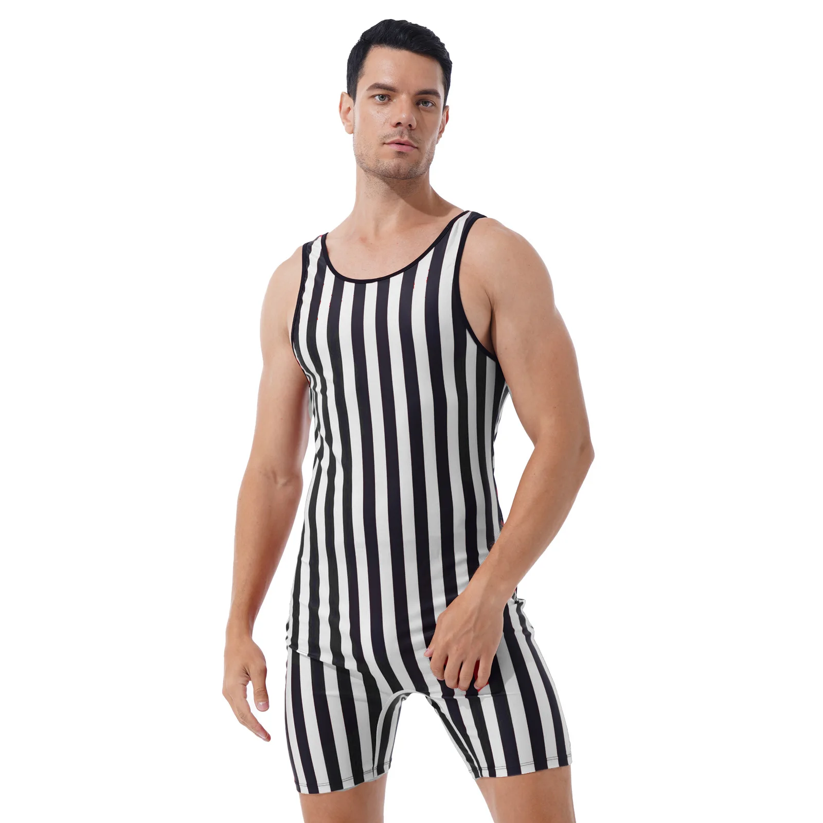 Круглый вырез, без рукавов, дизайн в полоску, облегающий крой, идеально подчеркивает Вашу мышцу.