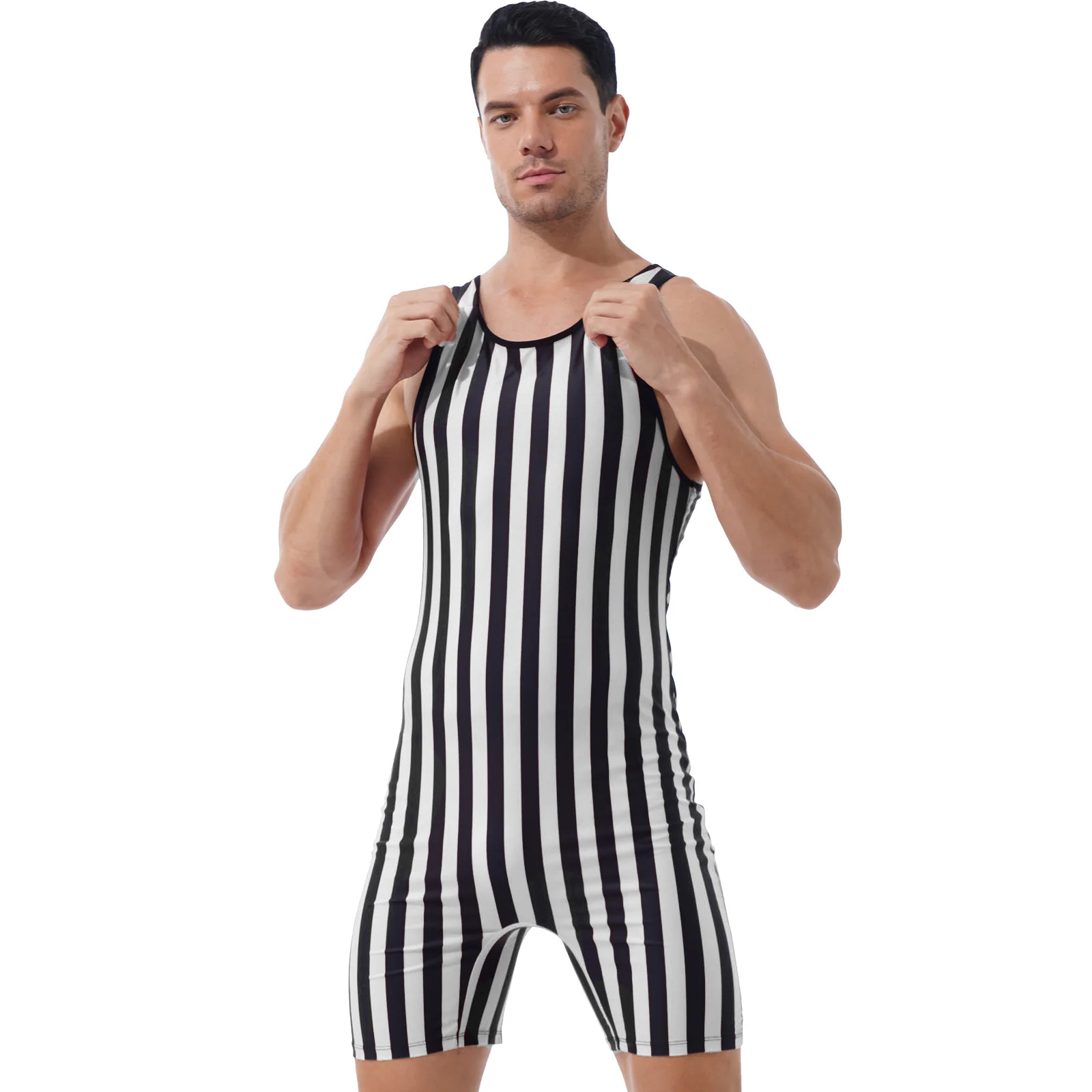 Мужская полосатая борцовка, облегающий костюм, эластичный купальник, спортивный комбинезон.
