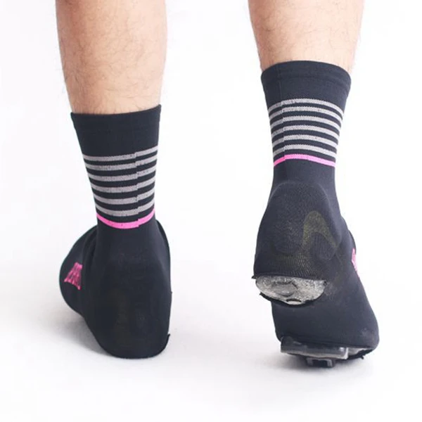 Чехол для обуви изготовлен из водонепроницаемой и высокоэластичной ткани с защитным слоем передней части стопы, отражающим логотипом и водонепроницаемой молнией.