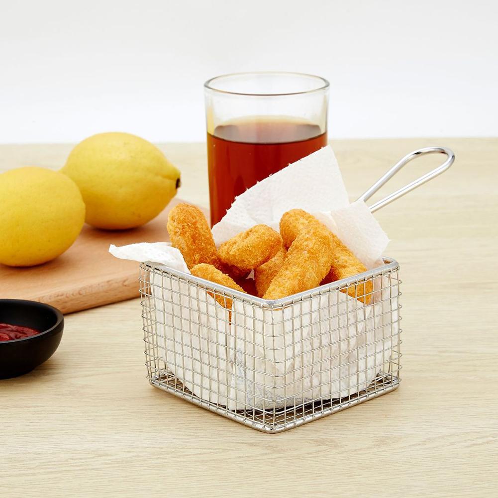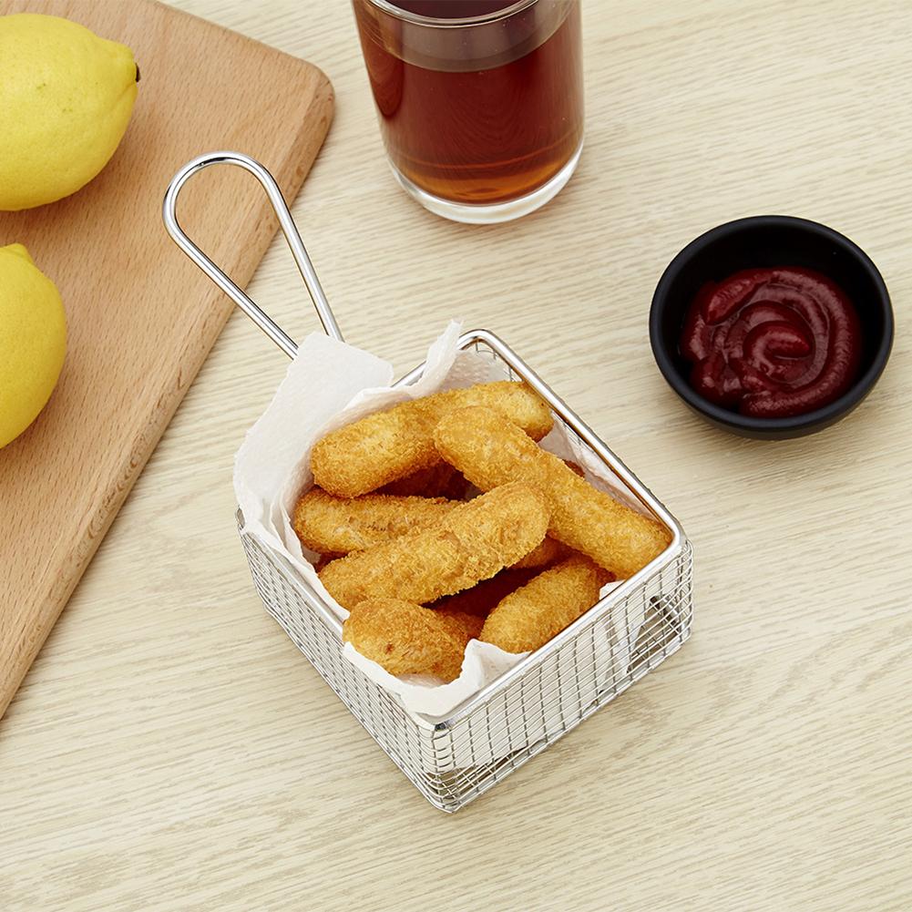 Квадратный жареный фильтр картофель фри куриные крылышки закуска корзина из нержавеющей стали
