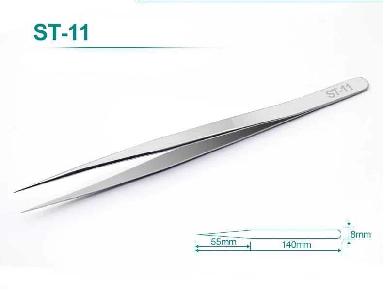 Набор точных пинцетов. Идеально подходит для всех работ по удержанию, вытягиванию, сжатию, сборке и щиплению. В комплект входят разные наконечники для разных кораблей: заостренные для максимальной точности, Угловые для эргономичной точности и тупые для тяжелых подъемов. А защитное покрытие предотвращает повреждение электростатическим соединением от электроники. Характеристики Длина: 5 дюймов Материал: сталь Включает: Пинцет ST, 1 шт.