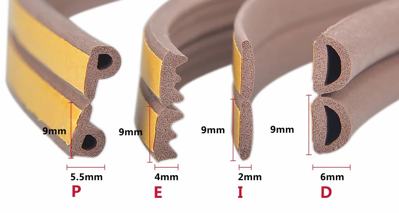 Материал: EPDM, силикон, ПВХ Форма: уплотнительная лента из пенопласта типа D Длина: 5 метров (16,4 фута) Цвет: черный, коричневый, белый [I ] Тип 9*2: подходит для crevice1-2mm [ Е ] Тип 9*4: подходит для crevice2-3mm [ D ] Тип 9*6: подходит для crevice4-5mm [ Р ] Тип 9*5,5: подходит для crevice4-5mm Особенности: Отлично подойдет для дверей и оконных рам. Водонепроницаемость, Ветрозащита, отличная устойчивость к старению. Легко режется и легко устанавливается, не требует специального инструмента. Предотвращение сбора пыли между раздвижными дверями или для окон. Уменьшают шум снаружи и захлопывание раздвижной двери, Дарит вам спокойную и комфортную обстановку. Устойчив к дождю и холодному ветру, дарит вам чистую и теплую среду. Защищает окно и дверь, уменьшает износ окна/двери при открытии и закрытии.