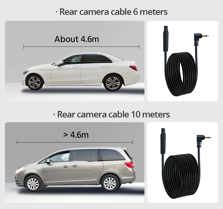 Есть 2 длины задней камеры (до 10 метров) может быть выбран, подходит для автомобилей различной длины. Пожалуйста, выберите заднюю камеру в соответствии с длиной вашего автомобиля.
