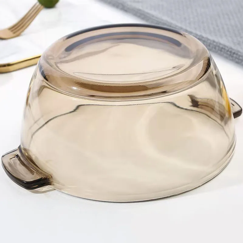 Стеклянная кастрюля, 1 шт., кастрюля для кухни, коричневое стекло с крышкой, бинауральная миска для лапши, фруктовый салат, Хрустальный горшок, микроволновая печь