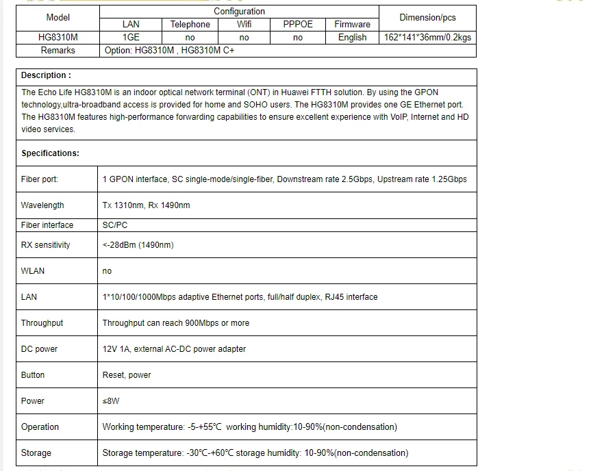 Gpon ONU HG8310M FTTH волоконно-оптический HG8010H ont маршрутизатор 1GE с питанием EPON ONU