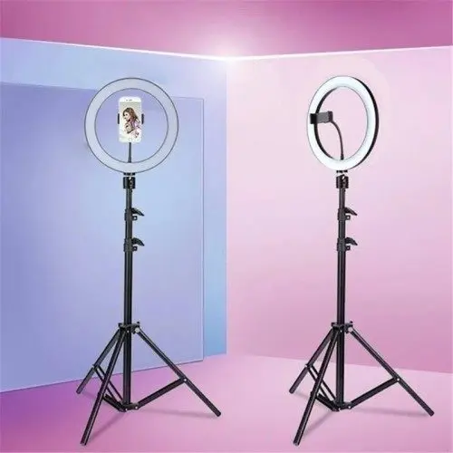 Кольцевая светодиодная лампа RK-40. Диаметр 26 см. С гибким держателем для телефона (максимальная ширина 9 см.). В комплекте с металлической шаровой головкой. Очень высокого качества, выдающая мощный и яркий свет. У лампы плавная регулировка цветовой температуры (теплый-холодный) и яркости. Источник света: LED SMD. Материал: пластик. Общая мощность: 21Вт. LED Лампы: 120 шт. Питание: USB от блока питания 5Вт/5V. Плавная регулировка яркости. Общее освещение: 2500LM (Lumen). Режим цвета: 3/2800К (теплый свет), 4500 (естественный свет) 6000К (белый свет).