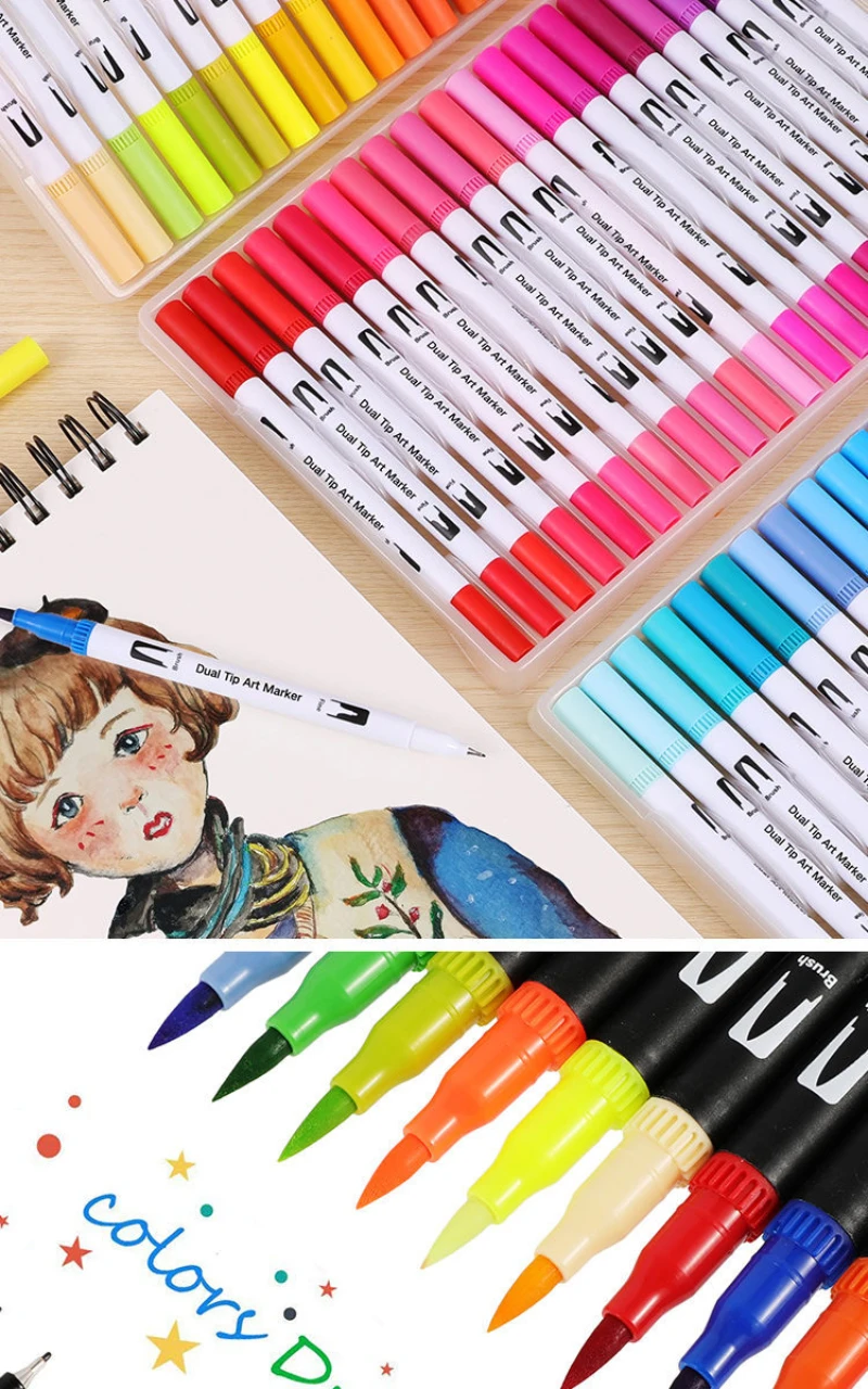 12/24/36/48/72/100 двухцветные кисти художественные маркеры и акварельные кисти ручки для рисования бумажной краски