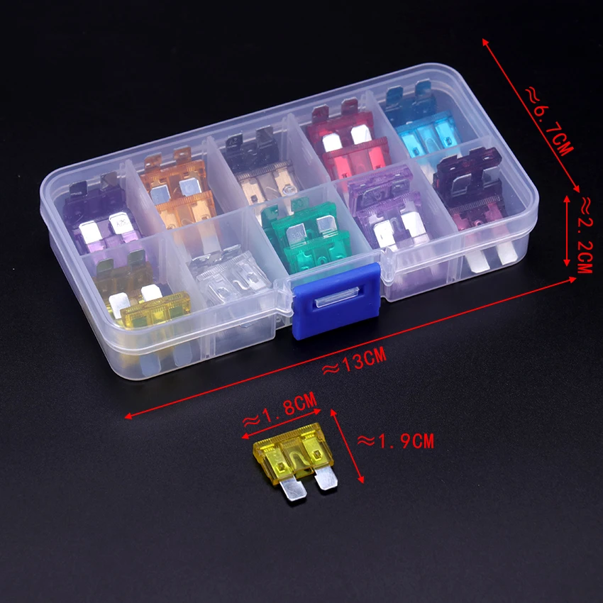 50 шт. Автомобильные предохранители 3A 5A 7.5A 10A 15A 20A 25A 30A 35A 40A Amp с зажимом для коробки, ассортимент, автоматический набор предохранителей типа лезвия, грузовик, внедорожник